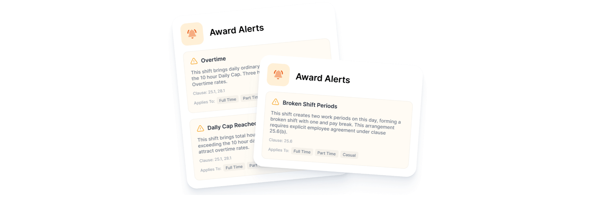 SCHADS award compliance built in — not as an add-on, not as a report you run after the fact, but as real-time alerts that stop issues before they become payroll problems